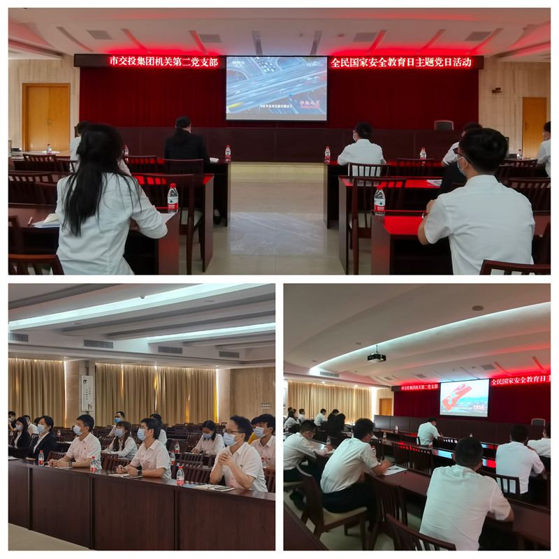 2022年4月15日上午,市交投集團(tuán)機(jī)關(guān)第一、第二黨支部組織黨員開展全民國家安全教育日主題黨日活動(dòng),集中觀看《護(hù)航之道——總體國家安全觀縱橫》宣傳教育片。
