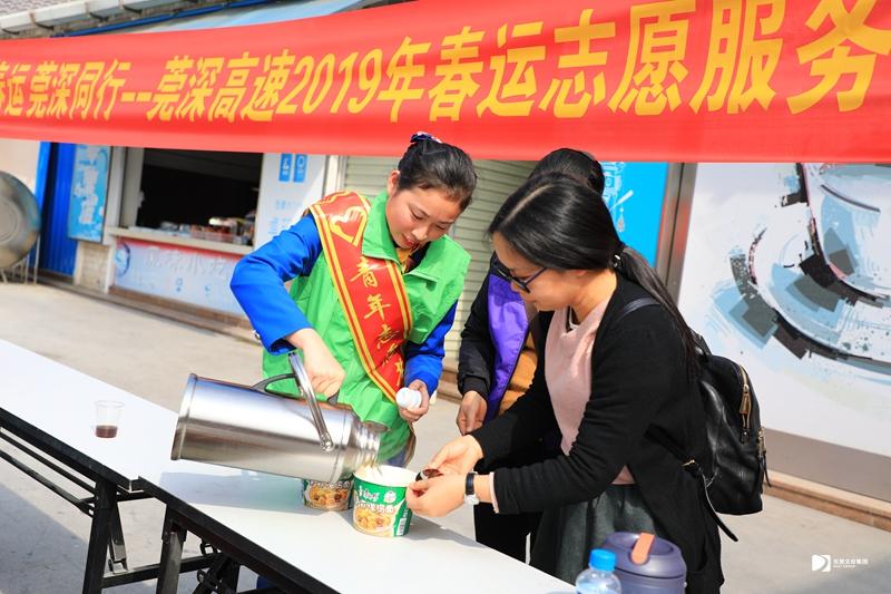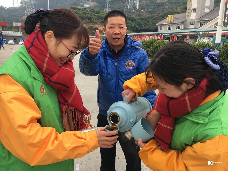 春運(yùn)期間,為途徑服務(wù)區(qū)的旅客送上熱開(kāi)水