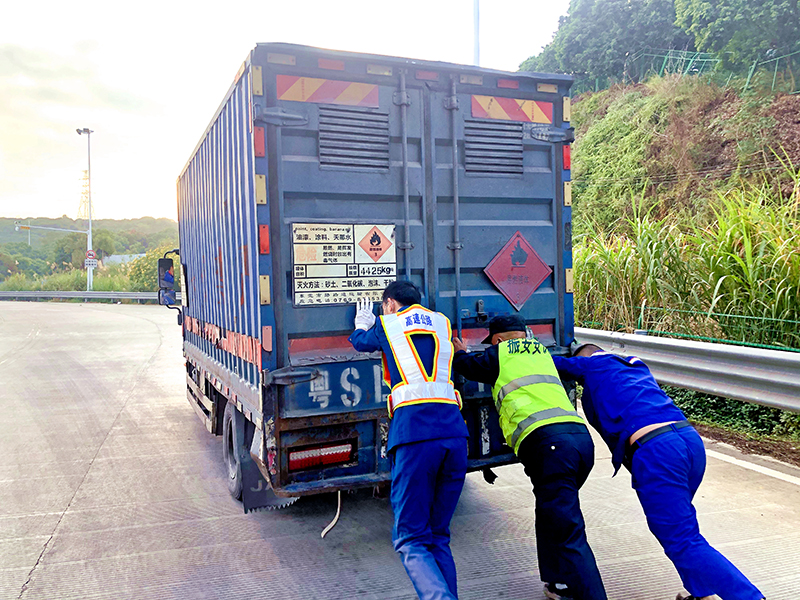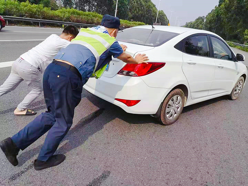 市路橋公司?;⒎止臼召M(fèi)一線協(xié)助司機(jī)將壞車移動(dòng)到安全區(qū)