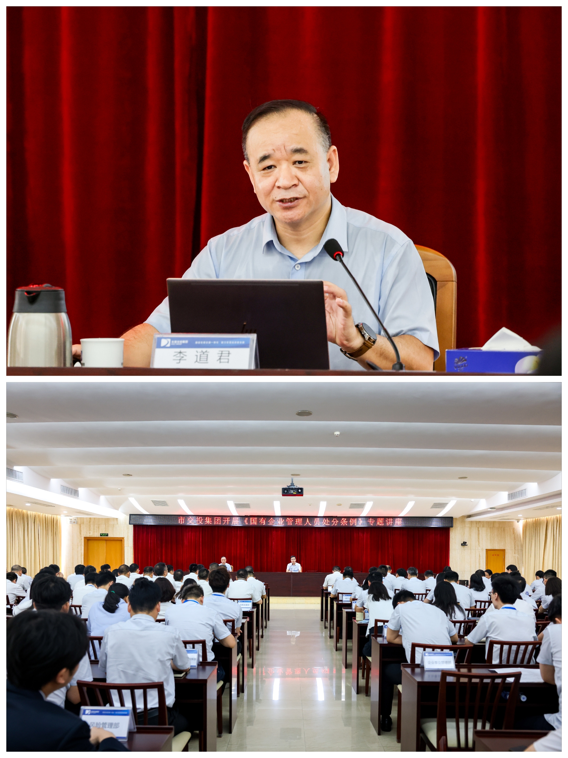 為進(jìn)一步提高集團(tuán)系統(tǒng)管理人員的合規(guī)意識、紀(jì)律意識和行為規(guī)范,8月28日上午,集團(tuán)紀(jì)檢監(jiān)察部邀請了東莞市法學(xué)會(huì)副會(huì)長、東莞市律師協(xié)會(huì)副會(huì)長李道君律師到我司作《國有企業(yè)管理人員處分條例》專題解讀。本次講座在集團(tuán)公司設(shè)主會(huì)場,下屬各級企業(yè)共設(shè)29個(gè)分會(huì)場,約960人參加。