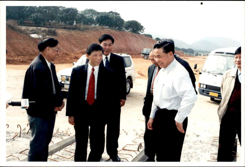 1999年2月16日,時(shí)任東莞市副市長(zhǎng)周致納(中)視察莞深高速公路