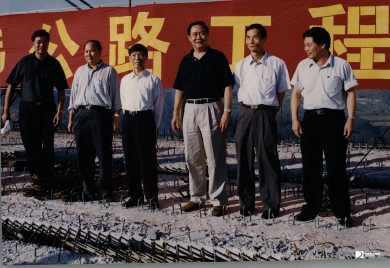 2000年8月21日 ,時(shí)任東莞市委書記李近維(左三)、市長(zhǎng)佟星(右三)、副市長(zhǎng)黎桂康(右二)、副市長(zhǎng)周致納(右一)等市領(lǐng)導(dǎo)參加莞深高速公路黃江互通合攏儀式。