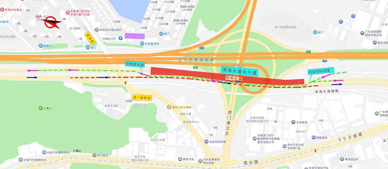 空間上“精準(zhǔn)劃界”:管制范圍嚴(yán)格限定在濱海大道虎門新聯(lián)路至莞太路口區(qū)間,施工期間主線車輛通過臨時車道或借道繞行,確保區(qū)域交通網(wǎng)絡(luò)有序運轉(zhuǎn)。
