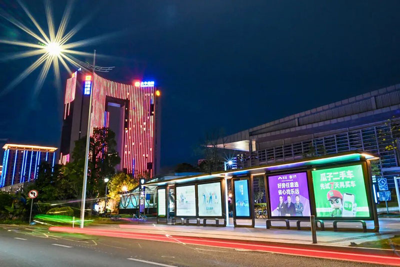 此外,鴻運傳媒公司還配合南城交通分局完成南城街道137座公交站亭燈光亮化,在站亭燈箱、頂棚加裝發(fā)光燈帶,不僅讓站亭燈箱廣告更加美觀,更有效保障了市民夜間步行、騎行安全。