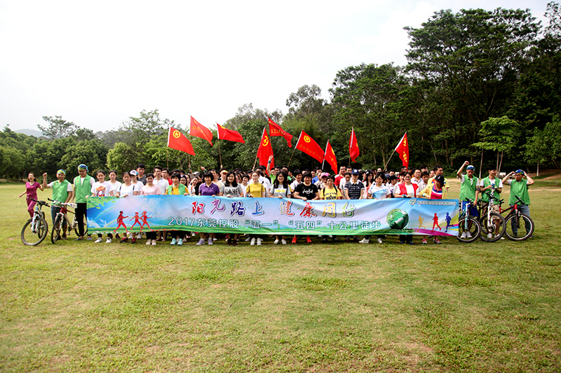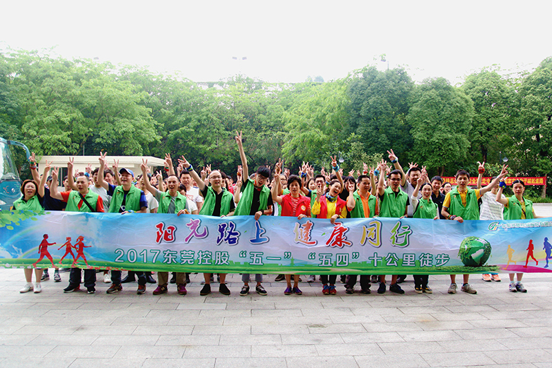 2017年5月3日,東莞控股公司舉行迎“五一”-“陽光路上,健康同行”十公里徒步活動,員工在徒步終點合影。
