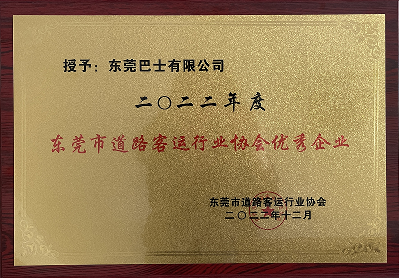2022年12月,東莞巴士有限公司榮獲2022年度東莞市道路客運(yùn)行業(yè)協(xié)會(huì)優(yōu)秀企業(yè)獎(jiǎng)牌